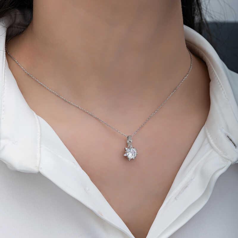 Özel günlerde kadınların tercihleri arasında ilk sıralarda yer alan kolyeler pek çok kadının kurtarıcısıdır. Spor ve klasik her kıyafetle kombinleyebileceğiniz çiçek desenli kolye, çok uygun fiyatla karşınızda. Zarif çiçek motifi üzerine işlenen küçük beyaz zirkon taşlarla desteklenmiş bu modelle şıklığınızı tamamlayabilirsiniz. Bu kolye modeli 925 ayar gümüşten imal edilmiştir. Gümüş üzerine rodyum kaplama yapılmıştır. Rodyum kaplama yapılan gümüş kolye modelleri parlaklığını uzun süre muhafaza eder ve oksitlenmesi gecikir. Tüm gümüş kolyelerde olduğu gibi gümüş çiçek desenli kadın kolye modeli de tamamen el emeği ile üretilmiştir. Gümüş ve değerli taşlar nedeniyle belirtilen ortalama ürün ağırlığında ± %10 sapma olabilmektedir.