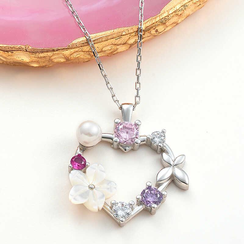 Gümüş Kalp Manolya Çiçeği Kelebek Kadın Kolye (T7981)