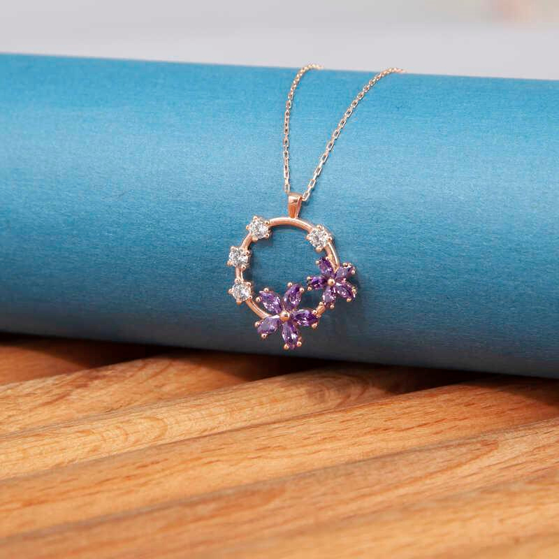Gümüş Rose Mor Çiçek Kadın Kolye